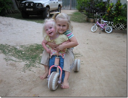 Overall 2011 has been a weird year for us, and in some ways we are feeling weary. A few times throughout the year when considering how full the calendar had been, Alan and I have thought this might be the busiest year we’ve had or will have (with house construction as the main culprit) in Mozambique. The busy-ness has led to stress, for our family and within the team as well, and we are ready for this season to be over. We’re extra thankful for the abundance of visitors this year, who have reminded us not only of how much they love us, but of the wideness of God’s love and mercy, too. Please pray for wisdom as we make choices of rest and work for our family as we finish out construction, and we’d like prayers for our health as well. Just within the past couple months, Alan has suffered from both malaria and amoebic dysentery, and I had a bad case of adult strep throat. Thankfully our children have stayed pretty healthy and are as full of life as always. Abby continues to love reading and school with her friends; Ellie is delighted to finally be in school like Abby. Katie Joy seems to think at times that she is just as big as her sisters, which of course means she can (at least try to) tell them what to do.